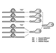 Master Keying is a way to operate several locks in a system with a Master Key, while each Lock can still operate with an individual Section Key, or Change Key. This can be a good system to use in an business with several different offices, or Business owner that manages different locations. Get rid of your bulky Key ring and get a Master Key.